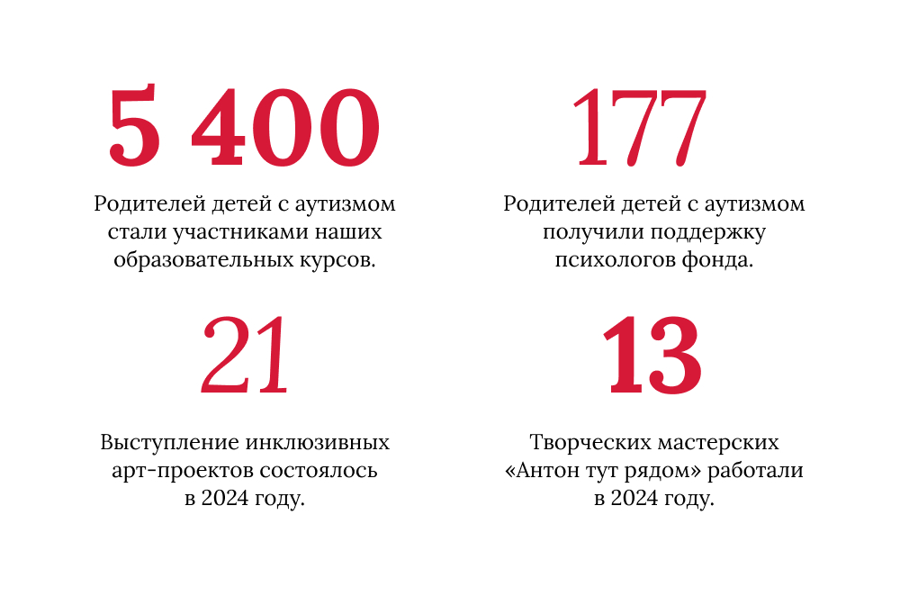2024 год — год, когда благотворительный фонд «Антон тут рядом» продолжал создавать общество, открытое для людей с аутизмом и их близких.