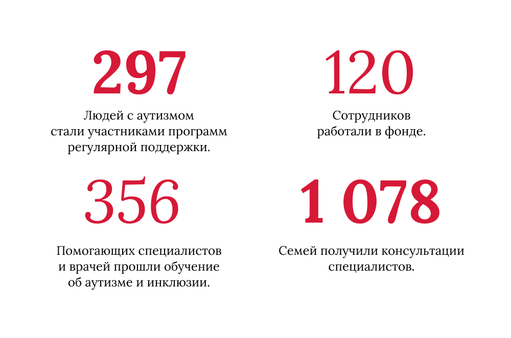 Мы выпустили первый в России инклюзивный рэп-альбом — группы Magi. Запустили первый в истории фонда онлайн-курс для помогающих специалистов о стратегиях поддержки людей с РАС. Отпраздновали 11‑й день рождения.