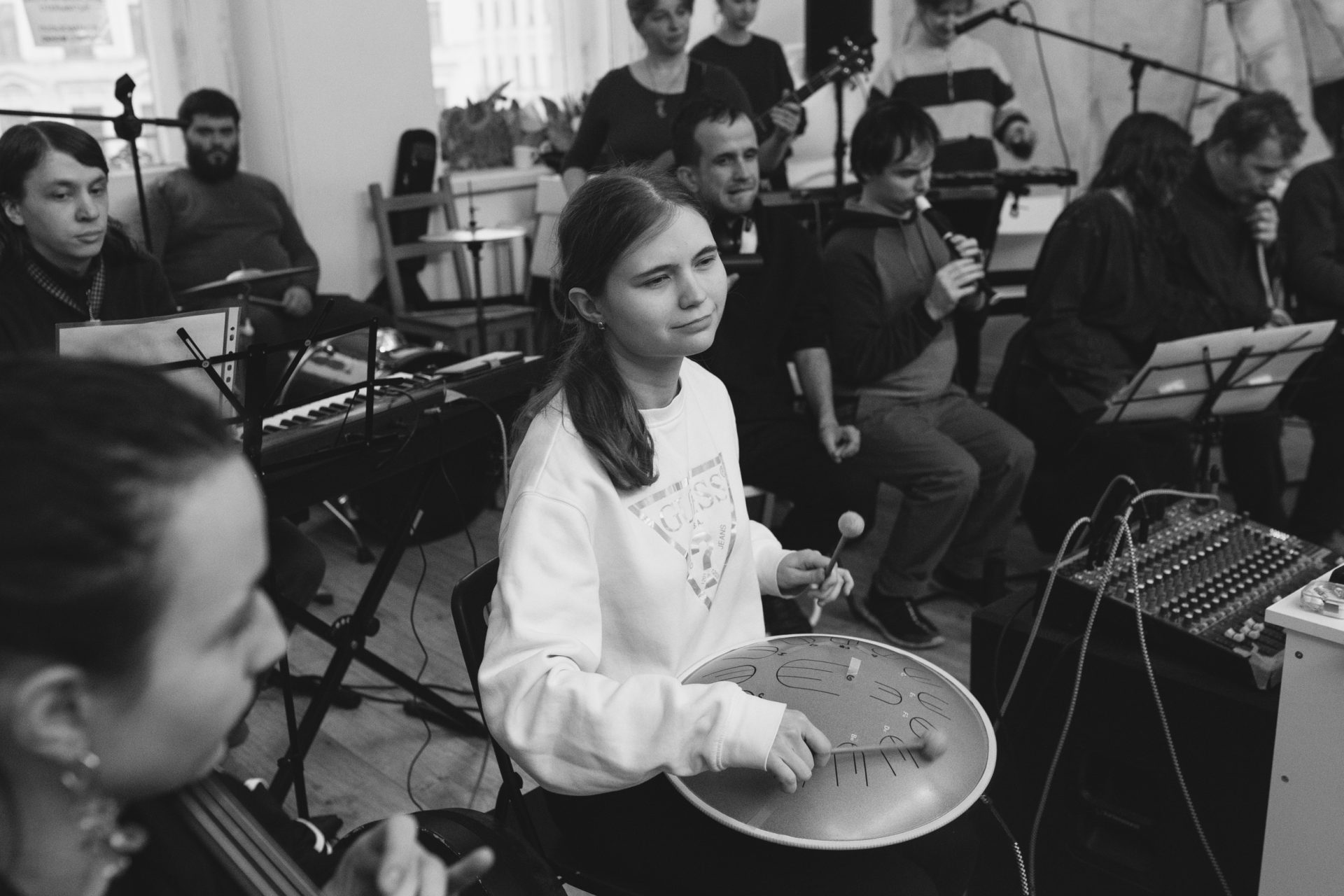 «В Оркестре Лена играет на глюкофоне — инструменте со строгой определенной тональностью. Нот в глюкофоне не очень много, но важно в них ориентироваться, чтобы получалось красиво. Лена с этим отлично справляется, ей этот инструмент очень подходит», — рассказывает Маша, репетитор Оркестра.