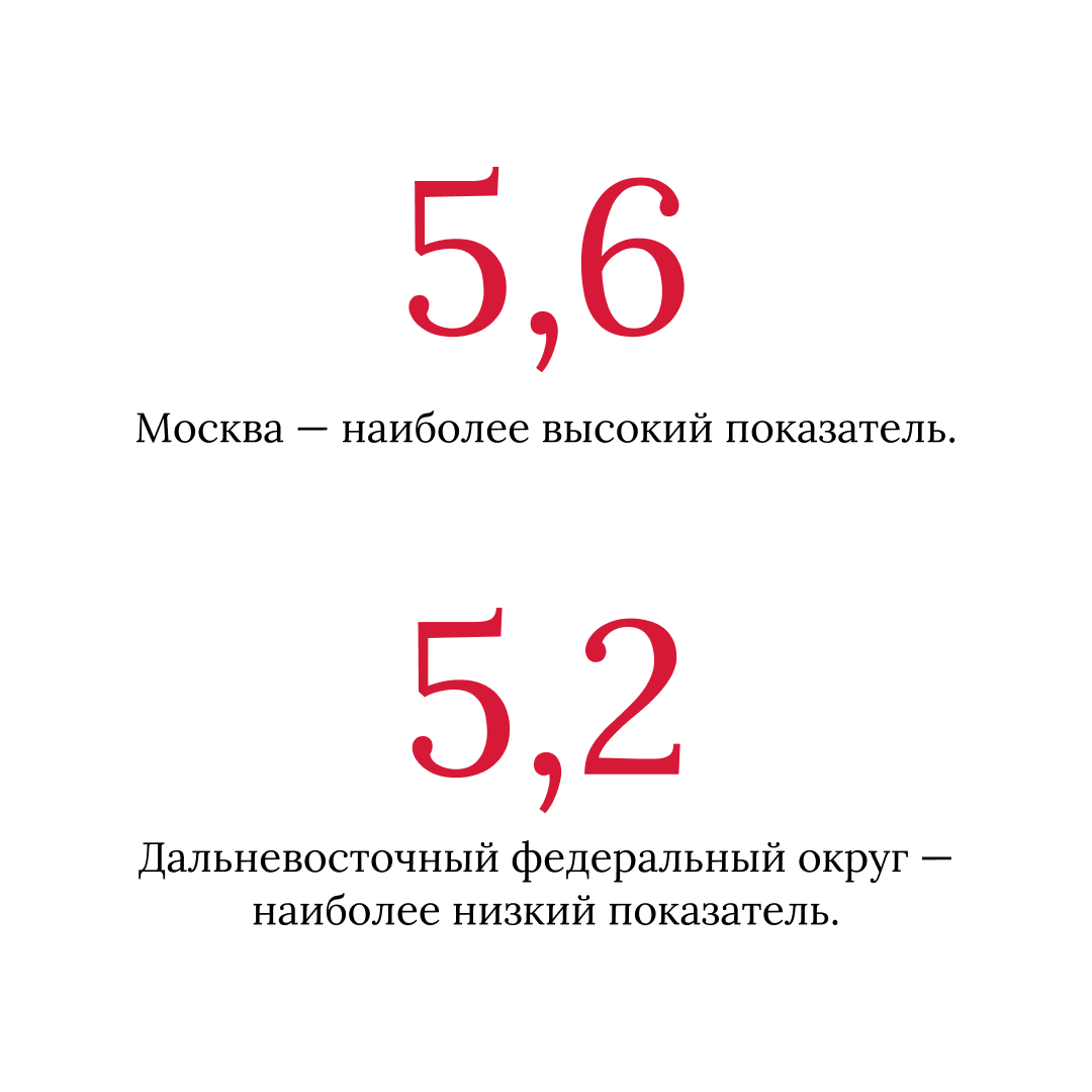 5,6 из 10 — в Москве. 5,2 из 10 — на Дальнем Востоке.